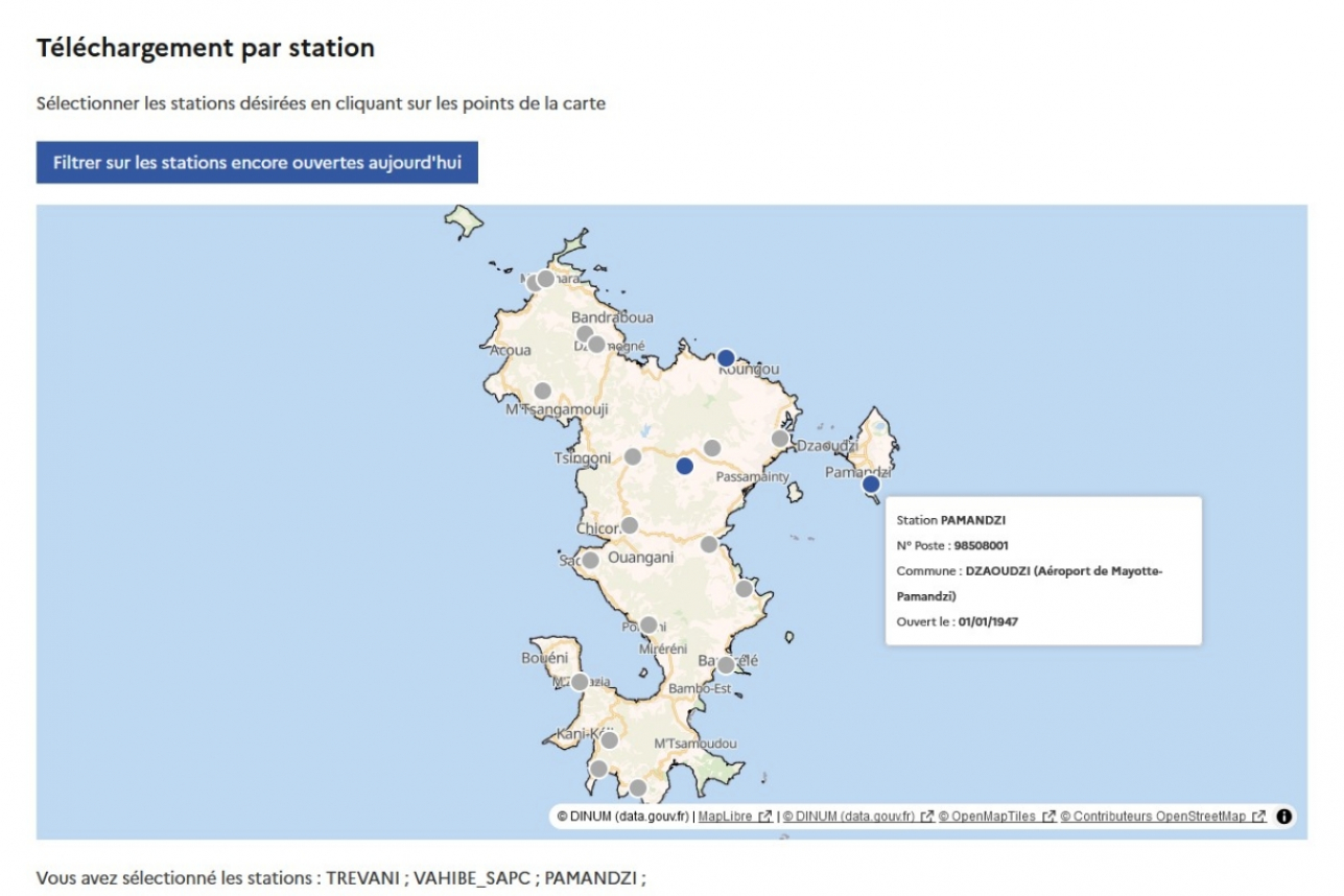 01/08/2025Sur l'archipel de Mayotte, une dizaine de stations météorologiques parsèment le territoire. Toutes leurs données sont disponibles gratuitement à tous les usagers. Cet article explique comment les télécharger.