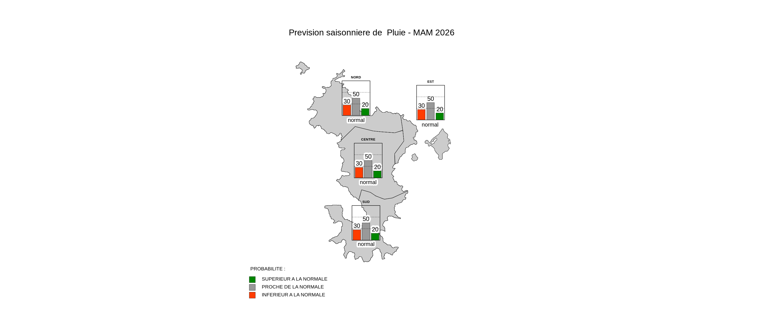 Pour le prochain trimestre Mars-Avril-Mai la prévision des cumuls pluviométriques est proche de la normale, dans un contexte de fin de saison pluvieuse, avec des vents qui s’orientent progressivement au nord. Les températures moyennes sont toujours prévues au-dessus des normales de saison sans atteindre des niveaux exceptionnels.